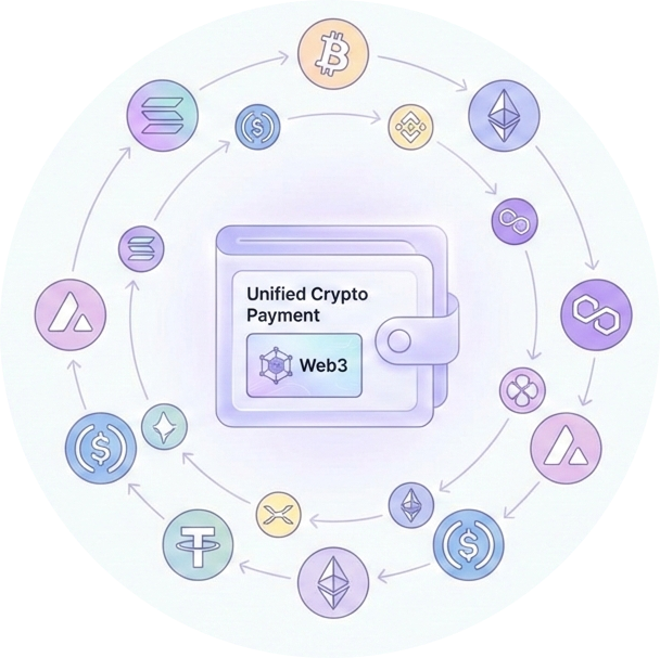 Enable seamless cryptocurrency payments for your business with a single, unified API. Support multiple digital assets across various blockchain networks with enterprise-grade security and settlement.